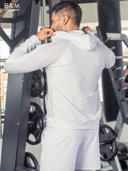 The jacket, made from technical materials, protects you from wind and rain, while the breathable jersey fabric keeps you cool and dry during your most intense workouts.